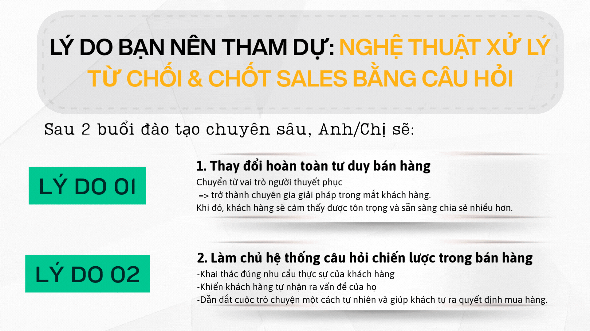 NGHỆ THUẬT XỬ LÝ TỪ CHỐI & CHỐT SALES BẰNG CÂU HỎI